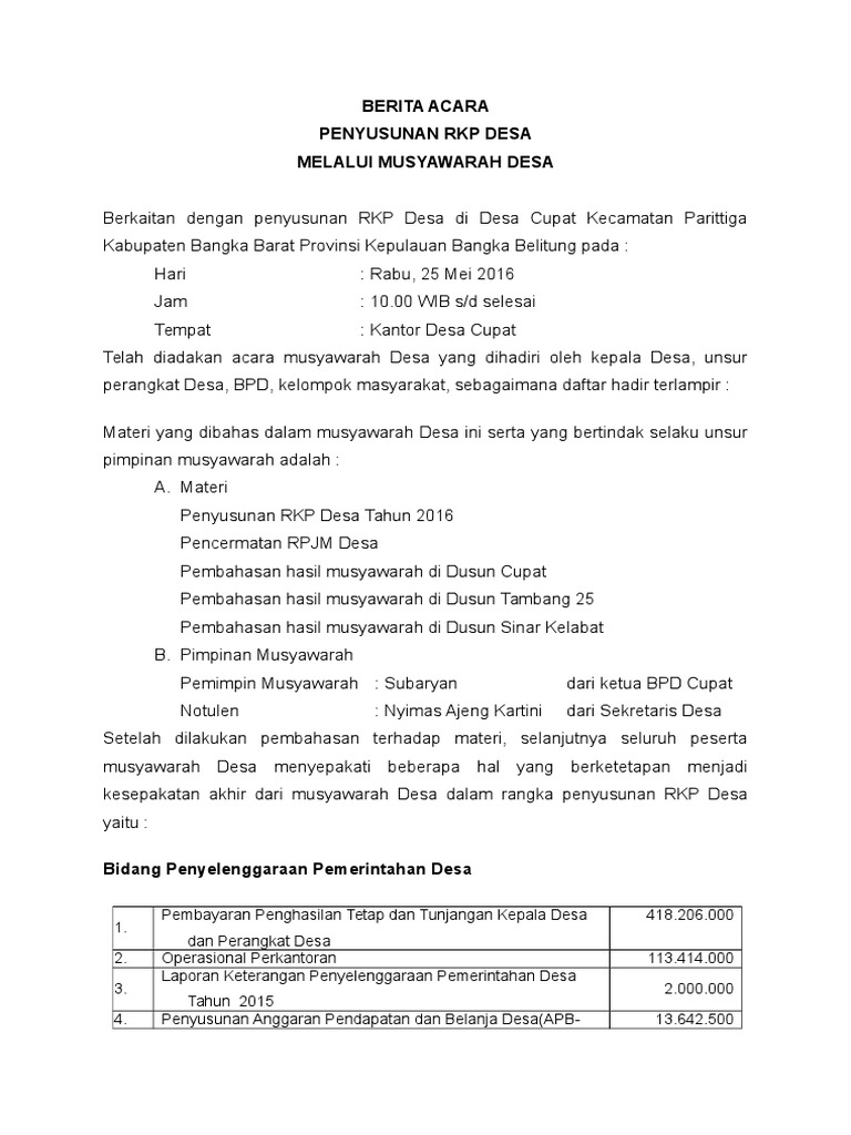 Contoh Notulen Musdes Rkpdes / Semua bph, koordinator divisi agenda rapat.. Bentuk dan contoh notulen sidang atau rapat. Melakukan pembahasan rancangan rkp desa hasil musrenbang desa; Documents similar to contoh isian format penyusunan rkpdes. Adapun agenda pada mudes tahapan ini adalah: Siapa yang berhak menyelenggarakan ?